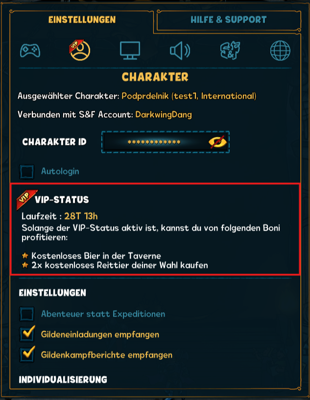 Die Vorteile des VIP-Status sowie die verbleibende Laufzeit kannst du in deinen Einstellungen einsehen.